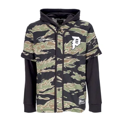 Men's Hooded Jacket Tiger Two-fer Baseball Jersey Camouflage In Black