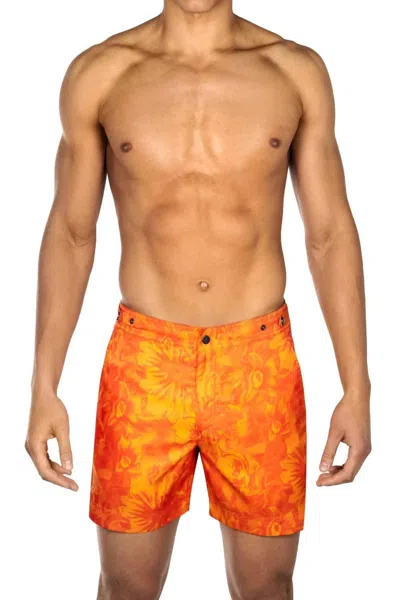 Men's Elvio Sunburst Swim Shorts In Orange Floral Print