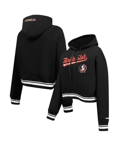 Women's Black Florida State Seminoles Script Tail Fleece Cropped Pullover Hoodie