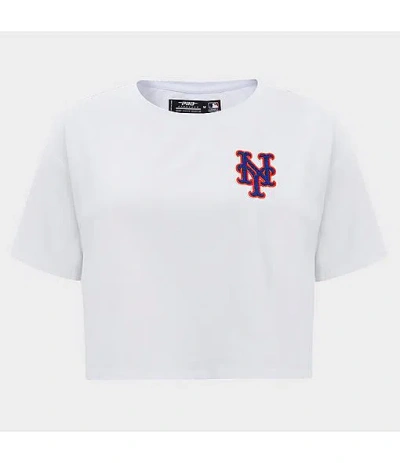 Women's New York Mets Mlb Classic Fleece Cropped Pullover Hoodie In White