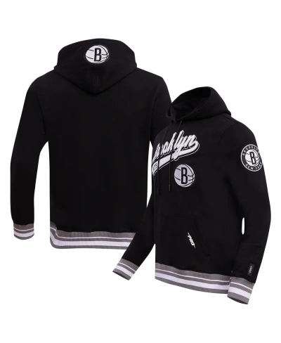 Men's Black Brooklyn Nets Script Tail Pullover Hoodie
