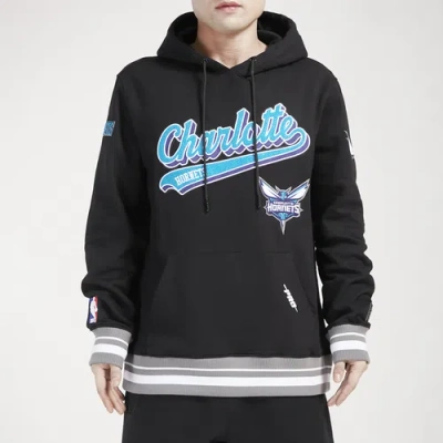 Mens Hornets Script Fleece P/o Hoodie In Black/teal