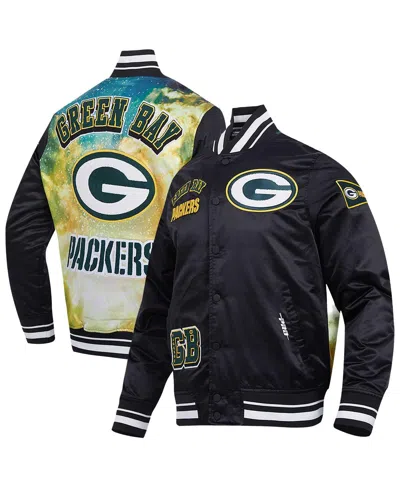 Men's Black Green Bay Packers Sublimated Satin Full-snap Jacket In Multi
