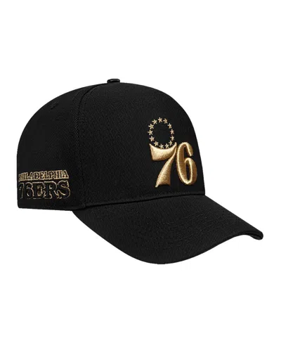Men's Black Philadelphia 76ers Metallic Logo Pinch Front Adjustable Hat