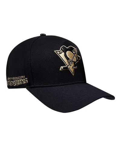 Men's Black Pittsburgh Penguins Metallic Logo Pinch Front Adjustable Hat