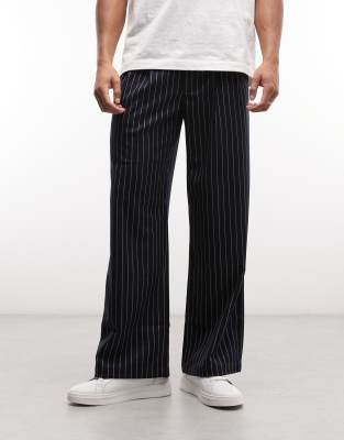 Soho Pleated Pinstriped Vintage Pants In Blue