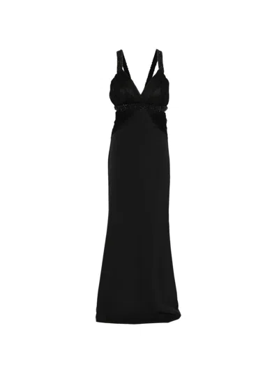 Teron Beaded Crepe Gown In Black