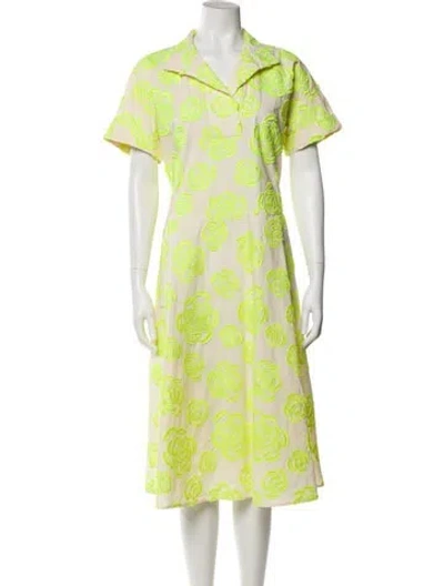 Pre-owned Floral Print Midi Length Dress In Yellow
