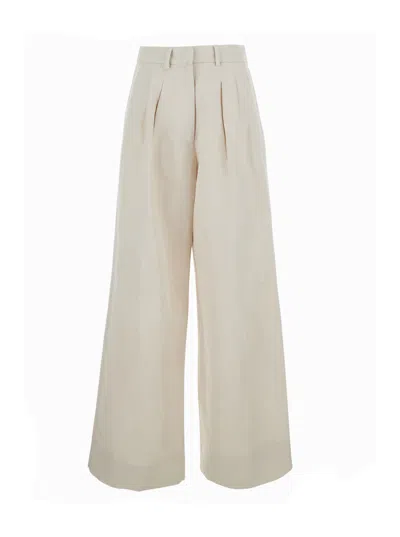 Pants Frankiecotton And Linen Stone Washed Twill Beige With Side Pockets And Elastic Waist In Cotton In Neutral