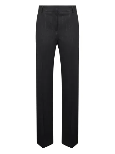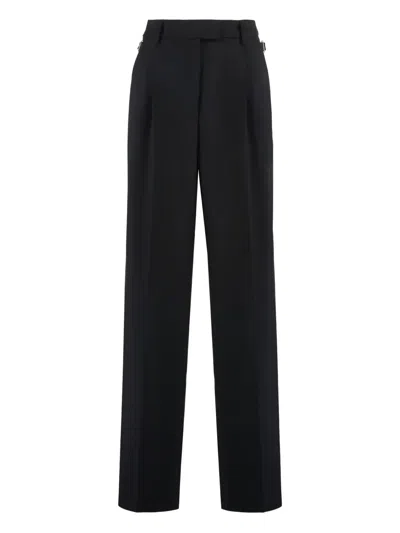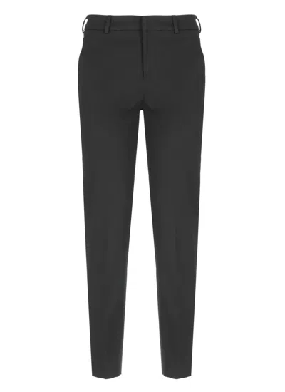 Tailored Black Cotton Pants With Front Fastening And Pocket Detail