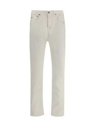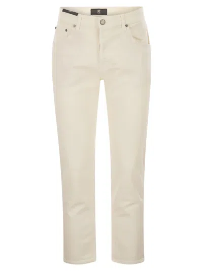 Slim Fit Cotton Blend Trousers With Pockets In White