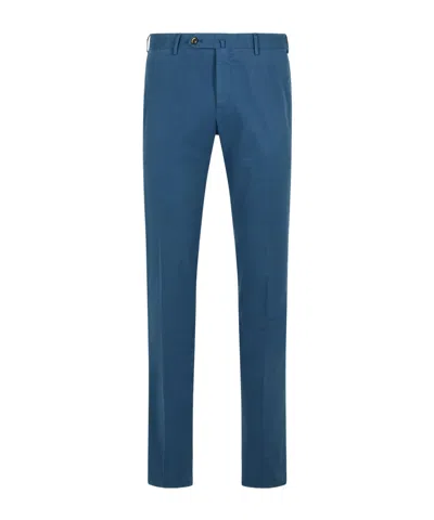Double Dye Stretch Light Popeline Slim Flat Front Pants In Blue