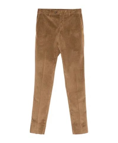 Single Pleat Brown Tailored Trousers In Washed Velvet In Black
