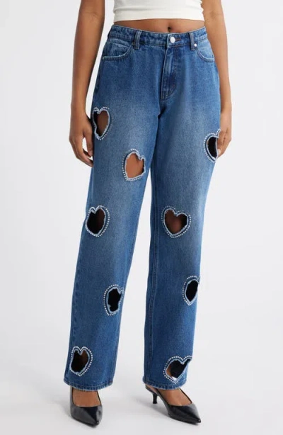 Heart Jacquard Barrel Leg Jeans In Light Wash