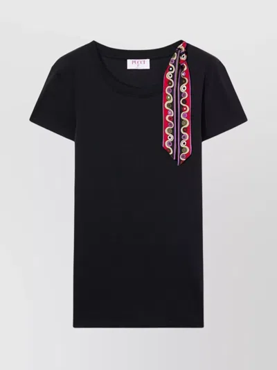 Iride-print Ribbon T-shirt In Black