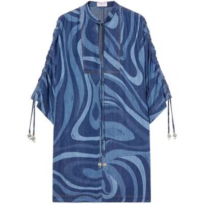 Marmo-print Denim Kaftan Dress In Blue