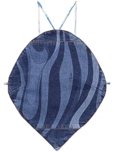 Marmo-print Denim Top In Blue