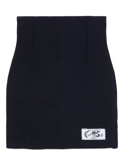 Label-embellished Ribbed Mini Skirt In Black