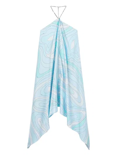 Marmo-print Silk Midi Dress In Blue