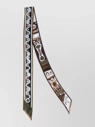 Silk Twill Bandeau Foulard Abstract Pattern In Brown