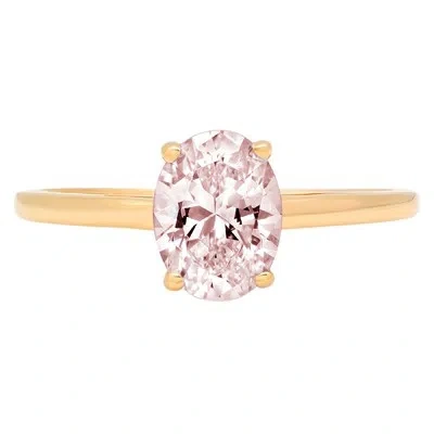Pre-owned 1ct Oval Cut Vvs1 Simulated Pink Diamond Promise Designer Ring 14k Yellow Gold
