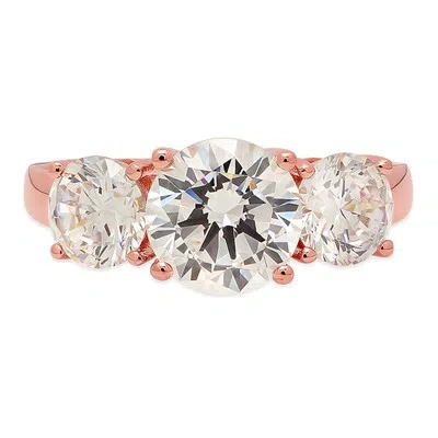 Pre-owned 3.05ct Round Simulated Diamond Engagement Solitaire 3 Stone Ring 14k Rose Gold In White/colorless