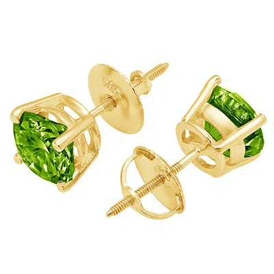 Pre-owned 4.0ct Round Cut Solitaire Natural Peridot Stud Earrings Solid 14k Yellow Gold In Green