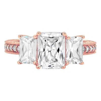 Pre-owned 4.26ct Accent 3 Stone Simulated Diamond Emerald Engagement Ring 14k Rose Gold In White/colorless