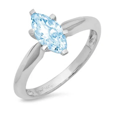 Pre-owned 1.0ct Marquise Cut Natural Aquamarine Wedding Bridal Promise Ring 14k White Gold In D