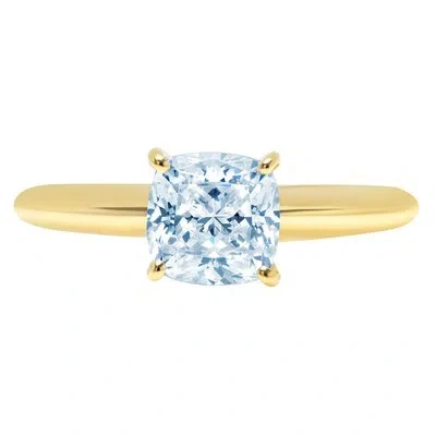 Pre-owned 2.0ct Cushion Cut Natural Aquamarine Wedding Bridal Promise Ring 14k Yellow Gold In D