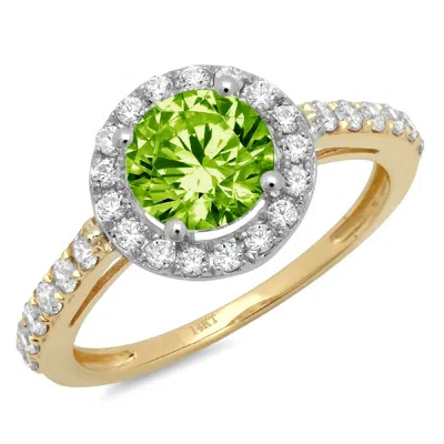 Pre-owned 2.40ct Round Halo Natural Peridot Promise Bridal Wedding Ring 14k 2 Tone Gold In Green