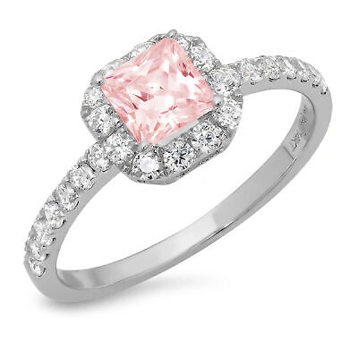 Pre-owned 1.40 Princess Pink Simulated Promise Bridal Wedding Designer Ring 14k White Gold
