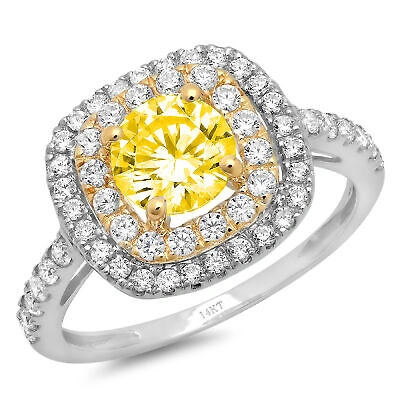 Pre-owned 1.75 Round Simulated Halo Yellow Stone Promise Bridal Ring 14k White Yellow Gold