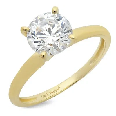 Pre-owned 2.5ct Round Gift Statement Bridal Classic Ring 14k Yellow Gold Lab Moissanite In White/colorless