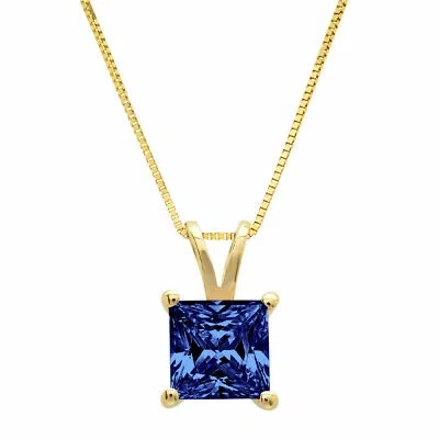 Pre-owned 2.0ct Princess Cut Tanzanite Simulated Pendant 18" Chain 14k Solid Yellow Gold In D