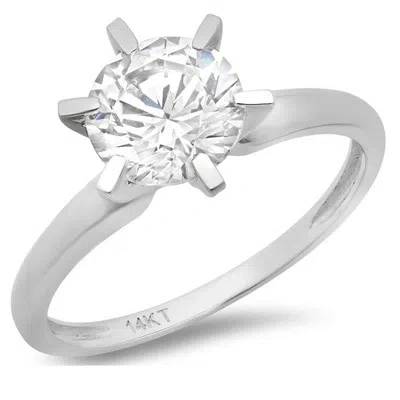 Pre-owned 2ct Round Cut Classic Solitaire Simulated Engagement Promise Ring 14k White Gold In White/colorless