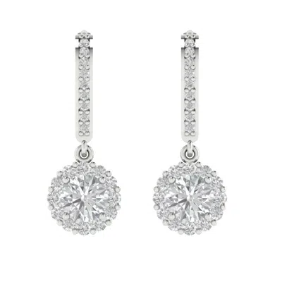 Pre-owned 2.2ct Round Cut Halo Classic Drop Dangle Earrings 14k White Gold Real Moissanite