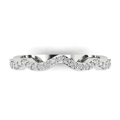 Pre-owned 0.30 Ct Round Simulated Wavy Curved Scalloped Stacking Band 14k White Solid Gold In White/colorless