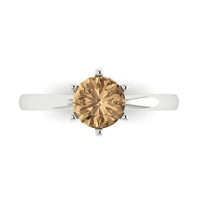 Pre-owned 1ct Round Cut Simulated Champagne Stone Wedding Promise Ring 14k White Gold