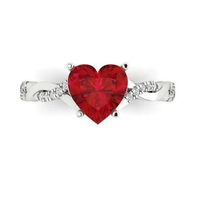 Pre-owned 2.19 Ct Heart Twisted Halo Ruby Simulated Promise Wedding Ring 14k White Gold