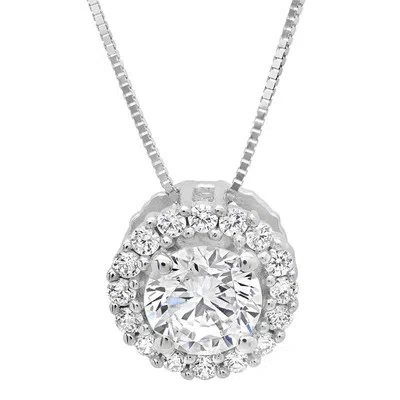Pre-owned 1.1ct Round Cut Simulated Solitaire Halo Pendant 14k White Gold + 16" Chain In D