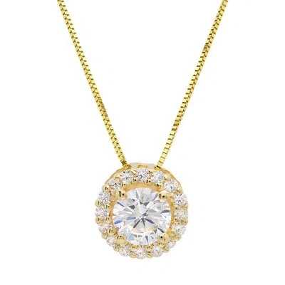 Pre-owned 1.5ct Round Cut Simulated Solitaire Halo Pendant 14k Yellow Solid Gold 16" Chain In D