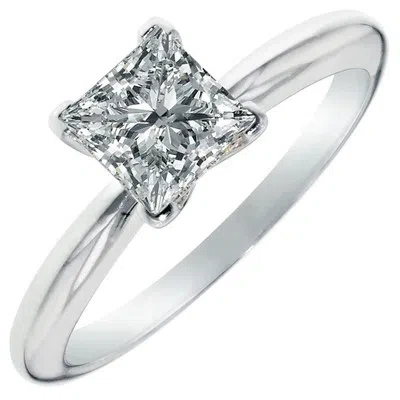 Pre-owned 1ct Princess Cut Synthetic Moissanite Wedding Bridal Promise Ring 14k White Gold In White/colorless