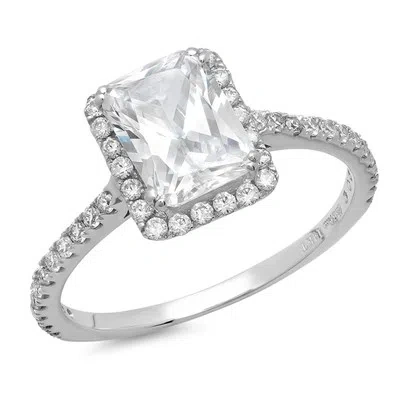 Pre-owned 1.85 Emerald Cut Moissanite Promise Bridal Wedding Designer Ring 14k White Gold In White/colorless