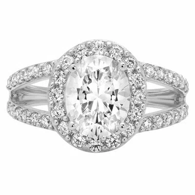 Pre-owned 2.24 Ct Oval Cut Halo Solitaire Engagement Bridal Wedding Ring 14k White Gold In White/colorless