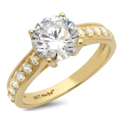 Pre-owned 2.45ct Round Simulated Diamond Engagement Anniversary Ring 14k Yellow Gold In White/colorless