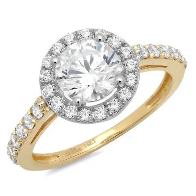 Pre-owned 1.85ct Round Simulated Diamond Halo Engagement Anniversary Ring 14k Yellow Gold