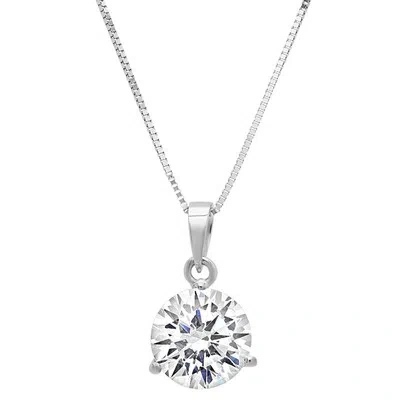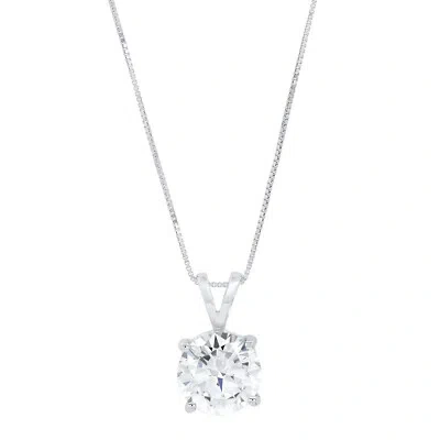 Pre-owned 2.7ct Round Cut Simulated Solitaire 14k White Gold Pendant Necklace + 16" Chain In D