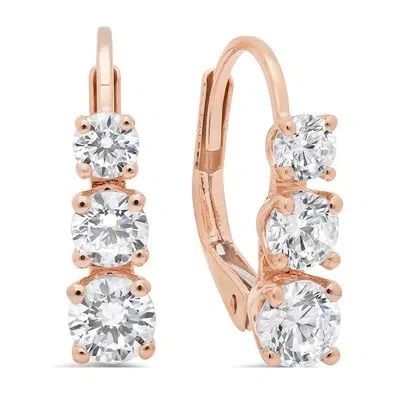 Pre-owned 3.4ct Round Simulated Diamond 3 Stone Past Present Future Earrings 14k Rose Gold