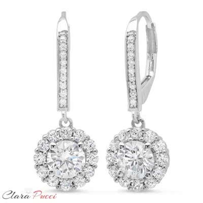 Pre-owned 3.65ct Round Simulated Diamond Halo Lever Back Drop Earrings 14k White Gold